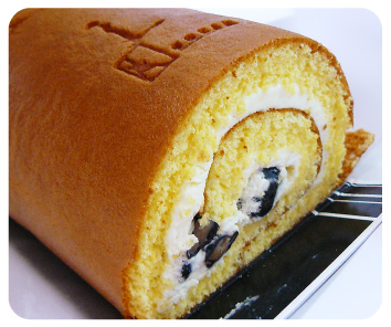クリームと一緒jに、黒豆が入った和風のロールケーキ。お米で出来ているという生地が、ふわふわで美味しかったです。
