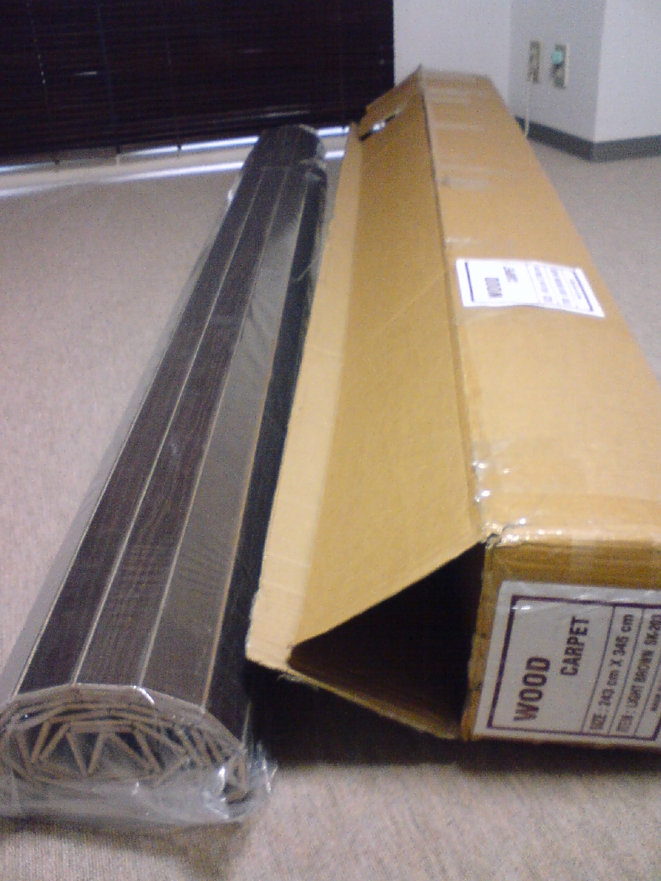 雲丹のお城は、もともと今をときめくフローリングではなく、カーペットなので、ネットでウッドカーペットたるものを注文したのだ。