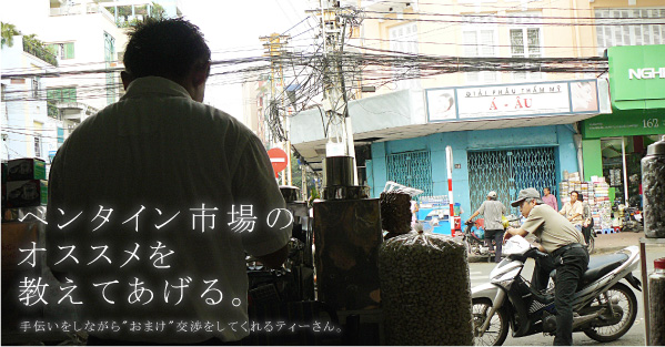 親切なティーさんと、ベンタイン市場までの道を歩きながら、自分がサイゴンの街に浮かれ過ぎていたと少し反省をしたけど、こういう出会いが無いと思うと、逆に万有引力の無くなった浮かれ気分のサイゴンで良かったと感謝をしている。