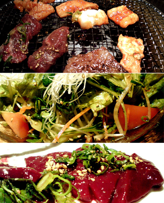 とりあえず、生レバーとゴマ油の兼ね合いに舌鼓を打ちつつ、テッチャンが牛の何処の部分かは、知ってても知らない振りをして、飲み込むタイミングを逃さないように細心の注意を払いつつ食す。