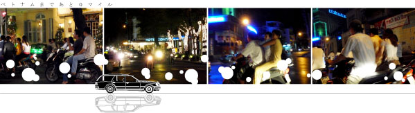 夕方の薄暗い空気の中、まったりと流れる車内の時間とは逆に、道路に蔓延る無数のバイクの波が私達を次々に追い越してゆく。
